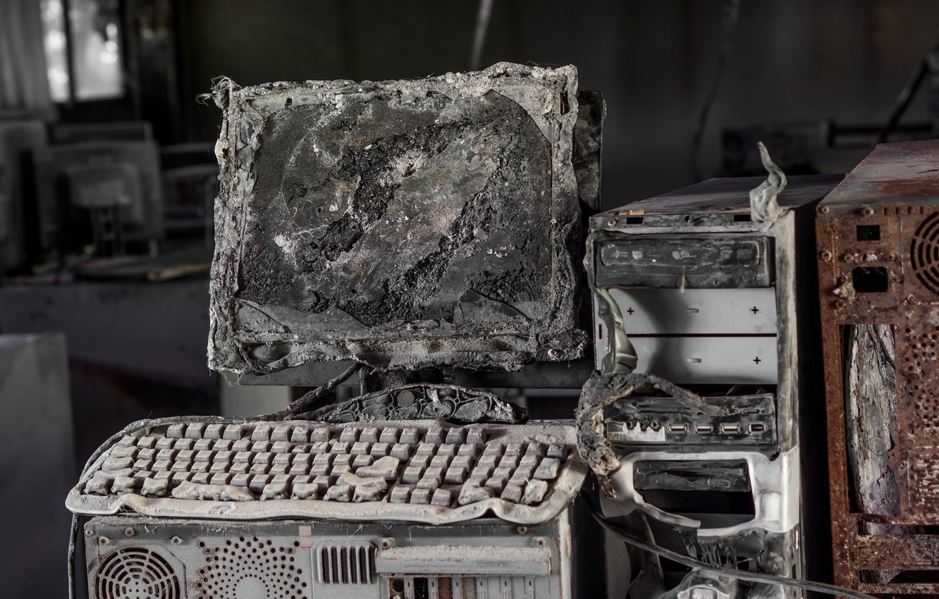 No fuerces demasiado tu cerebro tratando de averiguar qué representa esta imagen. Lo que estás viendo son portátiles que están siendo desarmados por técnicos para que el SSD del portátil pueda ser reutilizado. Los modelos de portátiles parecen recientes, y nos preguntamos qué los llevó a este estado.